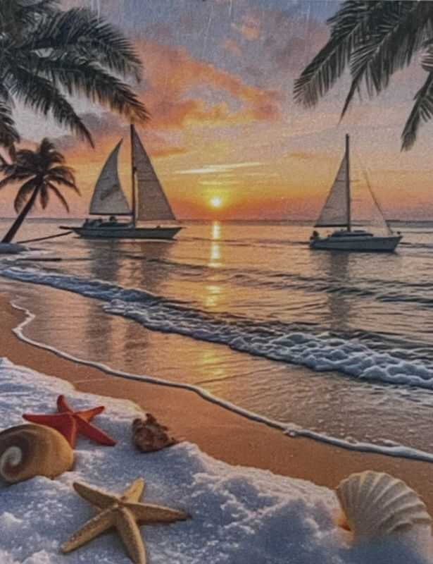 Boncuk Goblen Kiti (Yapıştırma) 5D Boncuk Mozaik Tablo 30x40 cm Gün Batımı Yelkenler